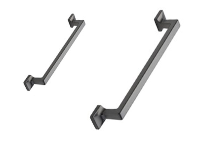 These furniture handles made from Zamac are finished with a gun metal coating? Gun metal leans towards black but is more of a dark gray. The furniture handles are available in different lengths that you can select in the scroll menu at the top right.