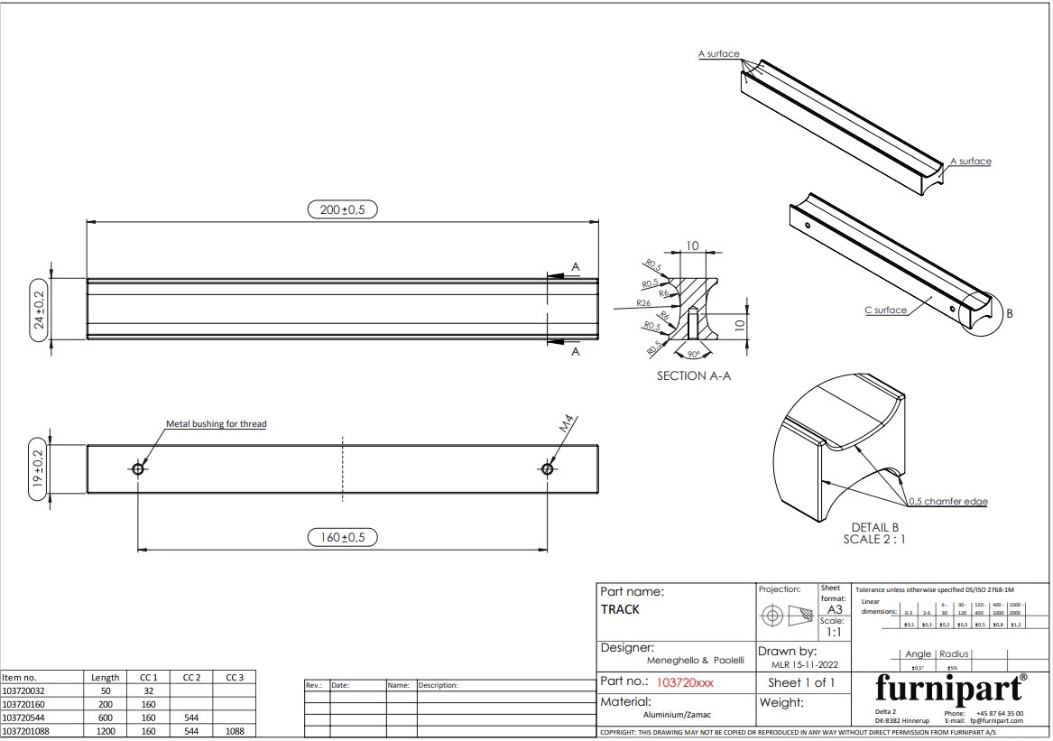 The TRACK furniture handles are reminiscent of a construction beam, which makes the door handles radiate strength and power. The design of these furniture handles, designed by Meneghello Paolelli, will retain its appearance over the years.