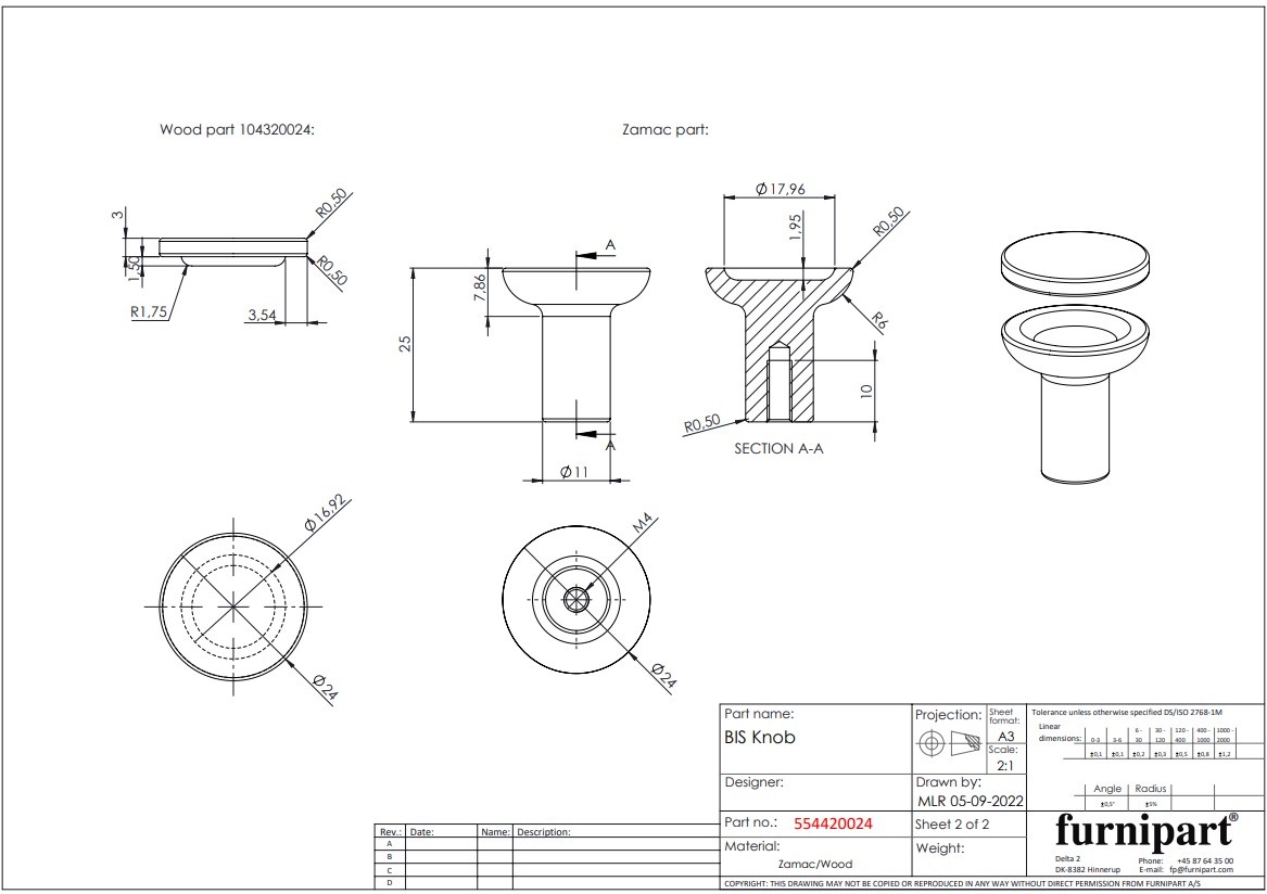 This wooden furniture knob comes from the Furnipart collection of 2023. The design studio Meneghello Paolelli Associati, which is based in Milan, designed these knobs for Furnipart.