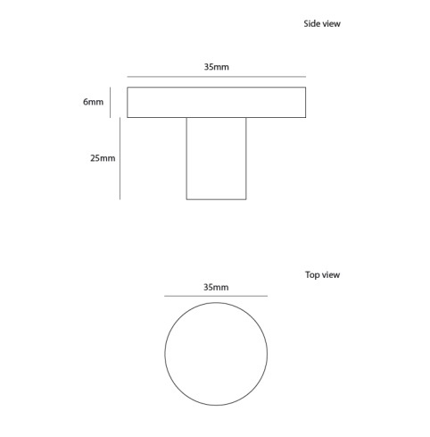 This round button with a Ø of 35 mm and a thickness of 6 mm shows a total of 31 mm. The brass knob is supplied per piece including one M4 mounting screw.