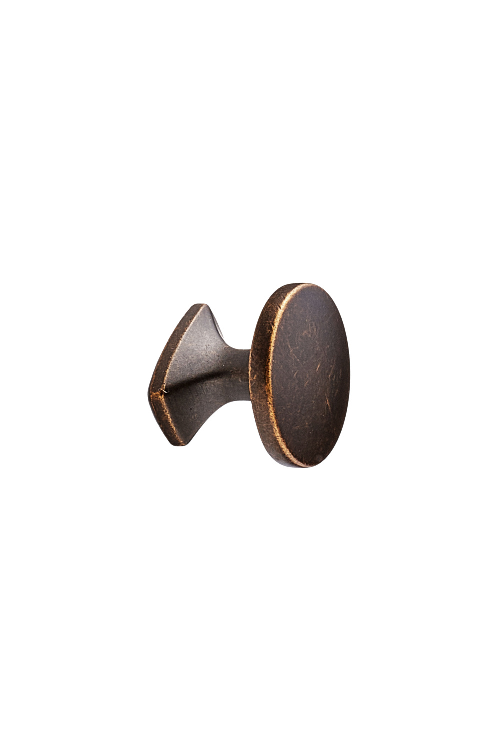 This round furniture knob is made of zamak and has an antique copper final coating