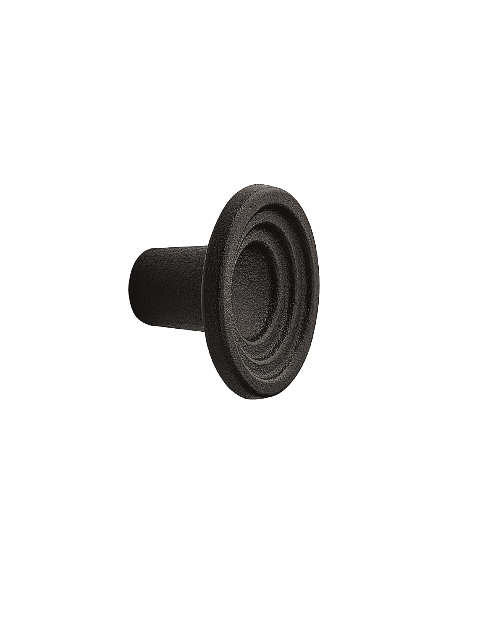 This furniture knob made of cast iron, which offers a number of very interesting possibilities for the designer, is finished with a matte black coating. This is not a smooth finish, but a finish with a bit of structure.