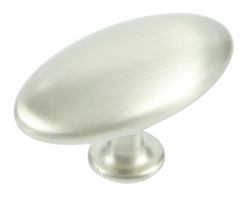 Flat oval furniture knob from zamac with a brushed stainless steel coating