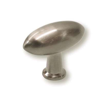 Oval furniture knob from zamac with a stainless steel colored coating. The button is brushed, giving the oval button the matte look