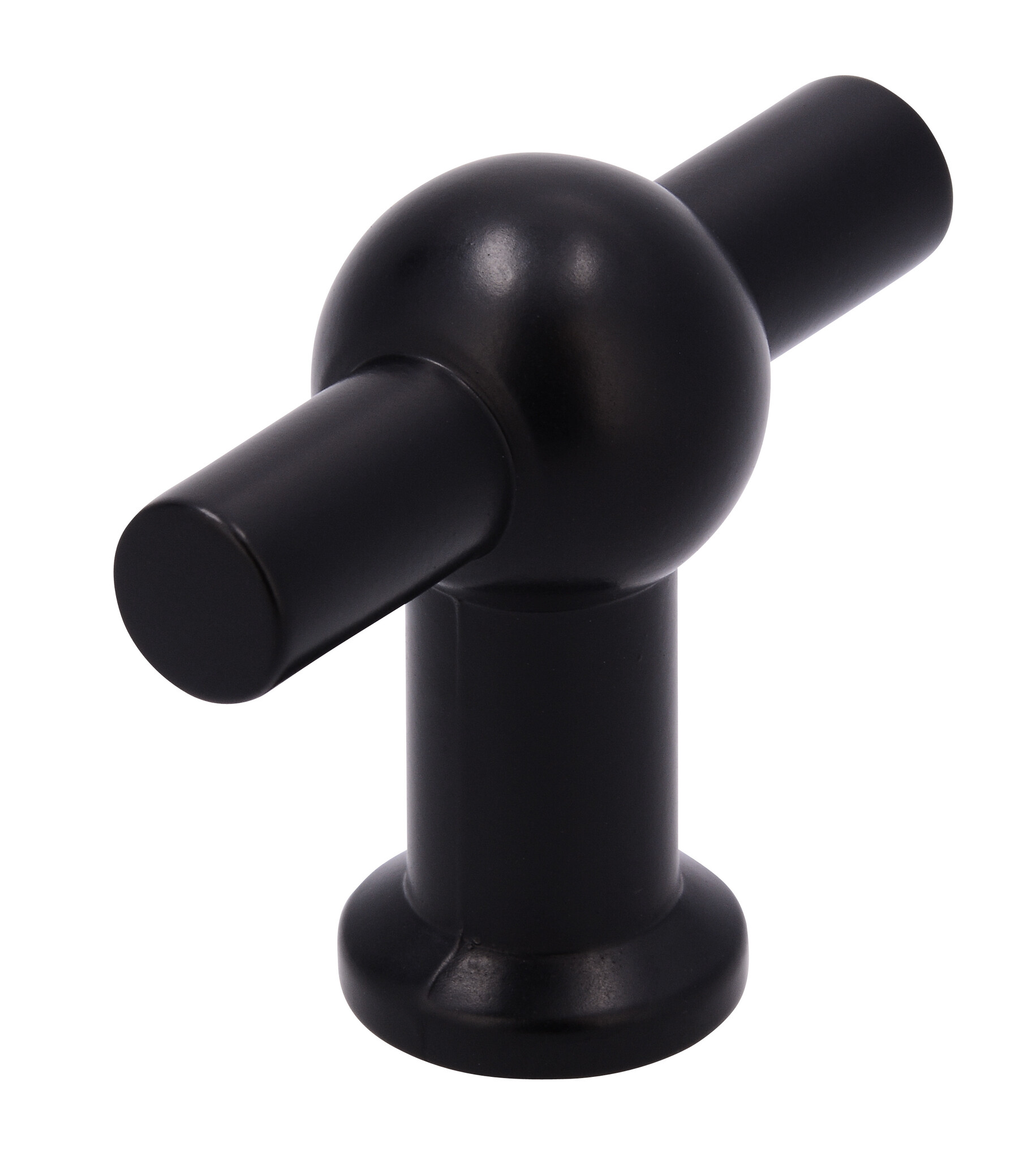 Beautiful T-shaped furniture handle made of zamac finished with a matte black coating.