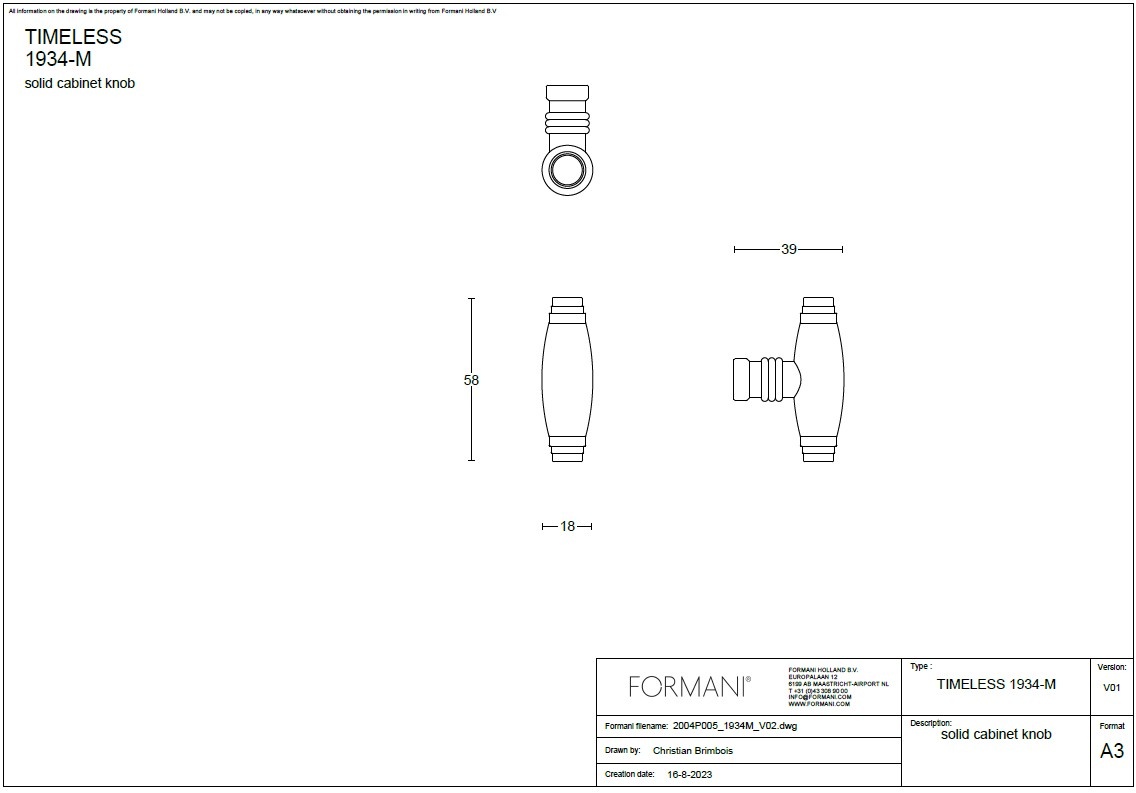 The Formani 1934M is an elegant furniture knob from the Timeless collection, where classic refinement and craftsmanship come together.