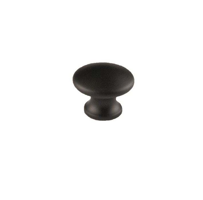 Furniture knobs in the shape of a mushroom made of brass and finished with a matte black coating (Ral 9005).