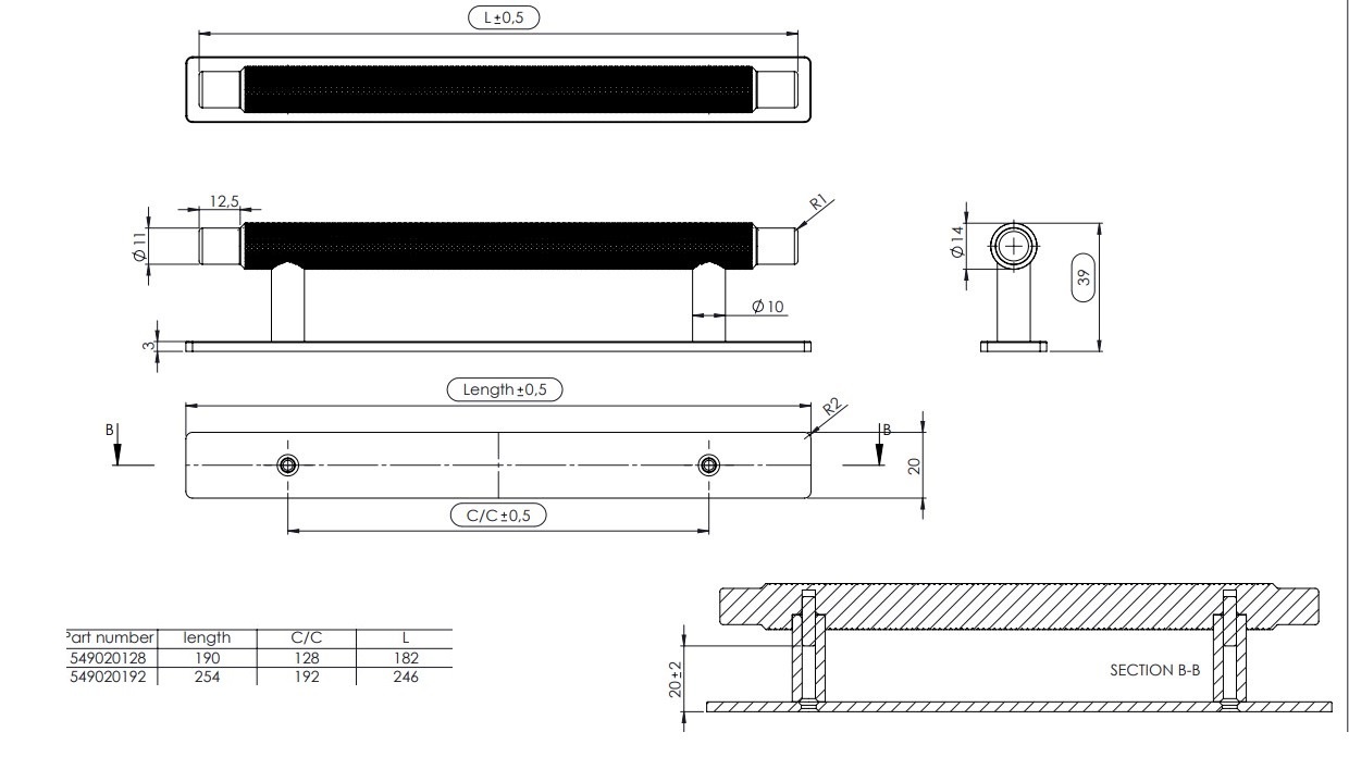 | Back plate dimensions | 246x20x3mm |