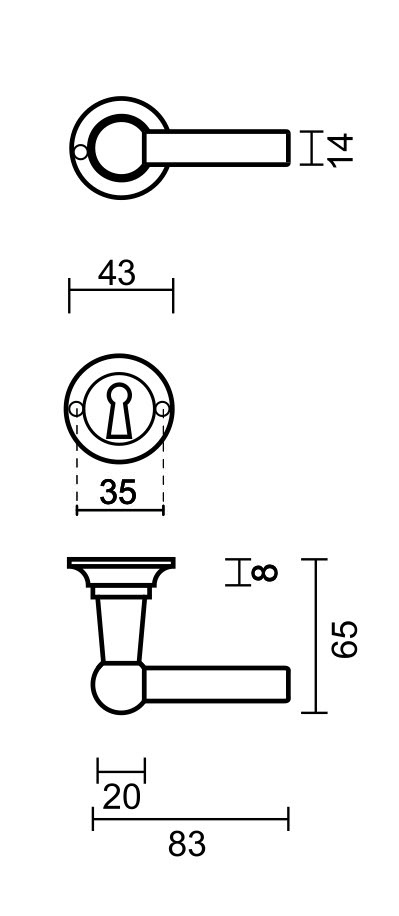 These door handles are available in 4 versions: without key plates, with key plates, with cylinder plates and with WC set. Make your choice in the scroll menu at the top right .