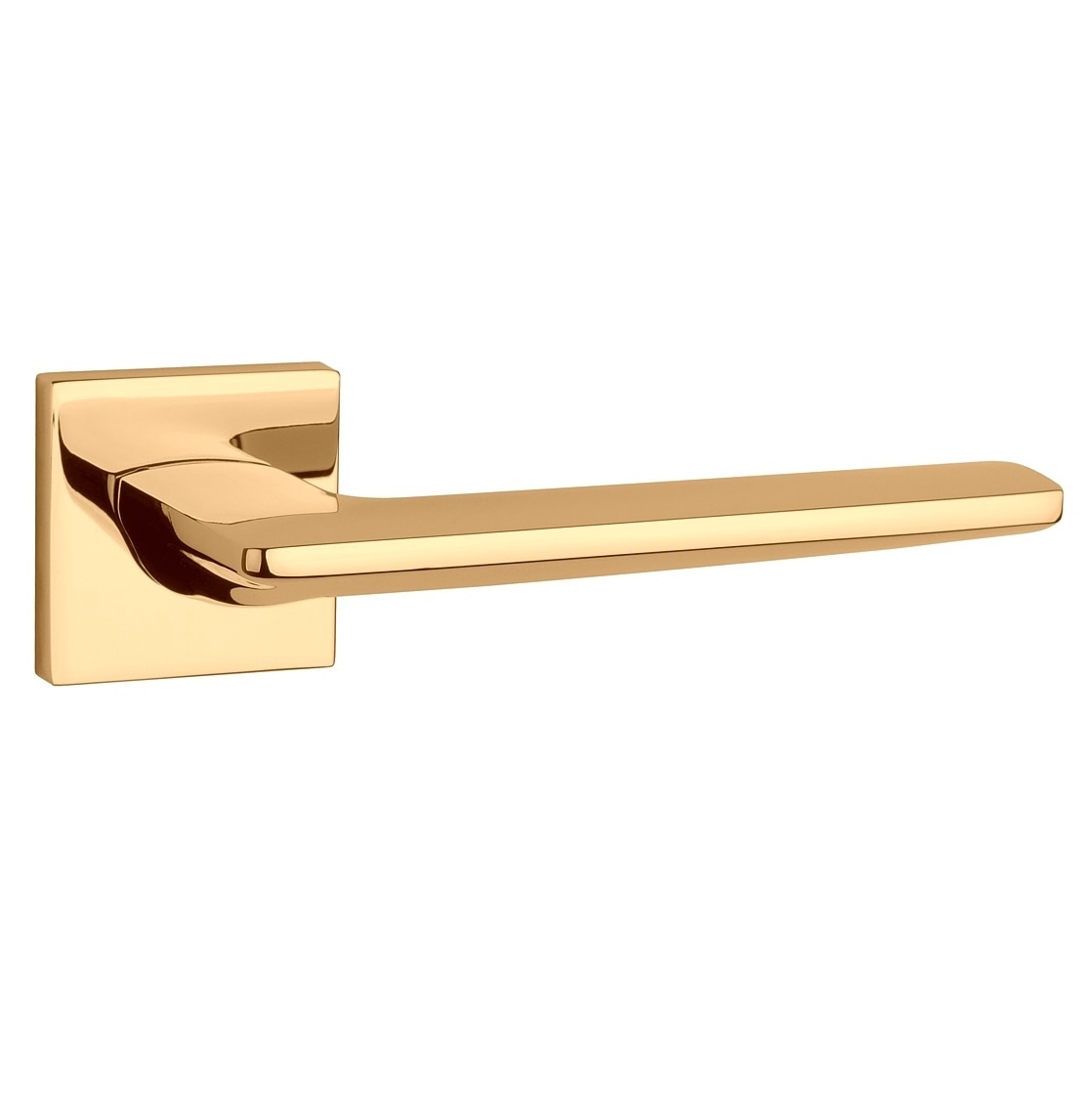 Fall in love with this beautiful gold-polished designer door handle, characterized by its flat top and rounded bottom. The result is a timeless door handle that fits into any modern interior.