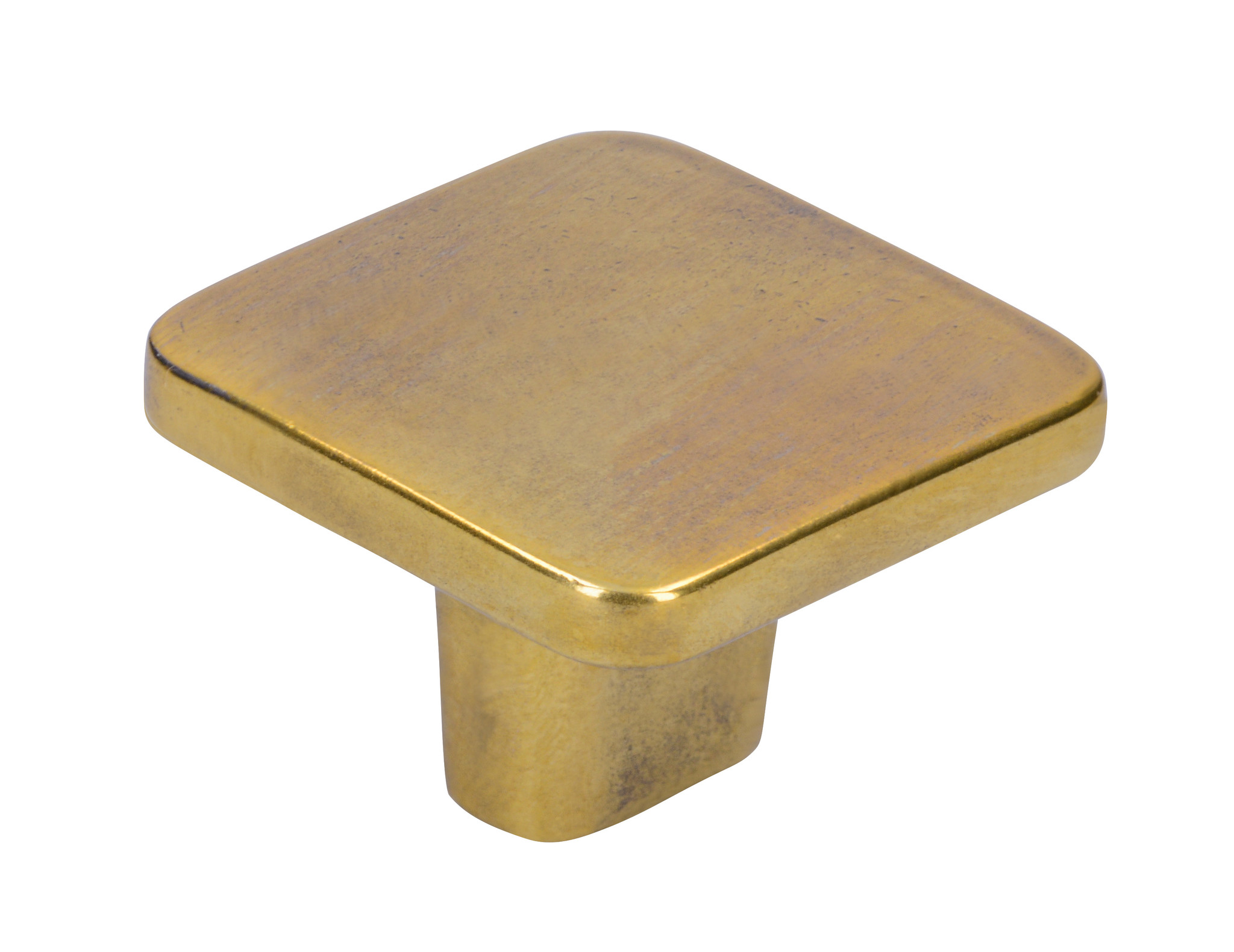 Beautiful square furniture knob from zamac with a strong old gold coating. The knob is brushed, creating and preserving the special old gold look.