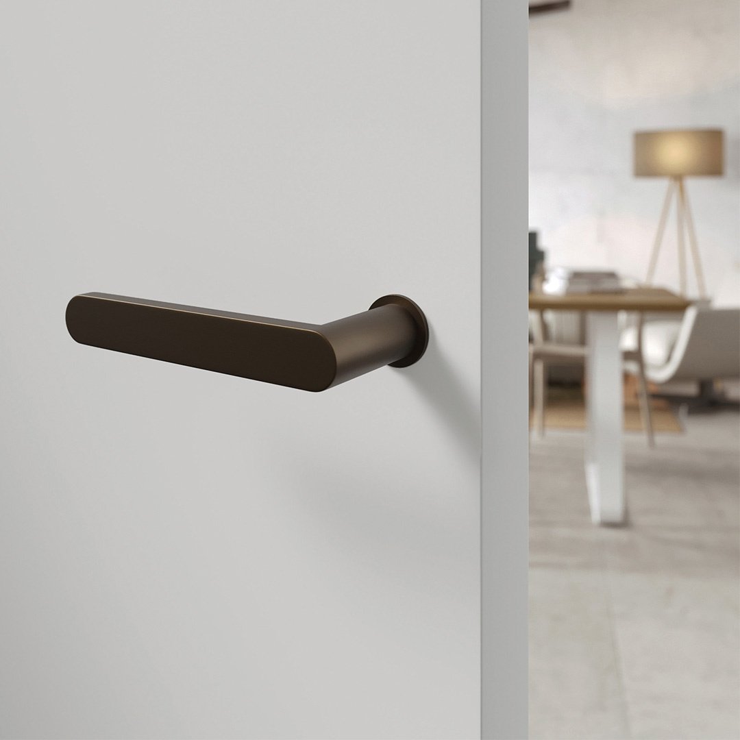 Although the design is visually related to other straight models, the Minimal Build distinguishes itself through its balanced proportions and pure design. The dark matte bronze finish gives the door handle a powerful yet understated look that fits effortlessly into a sleek interior concept.