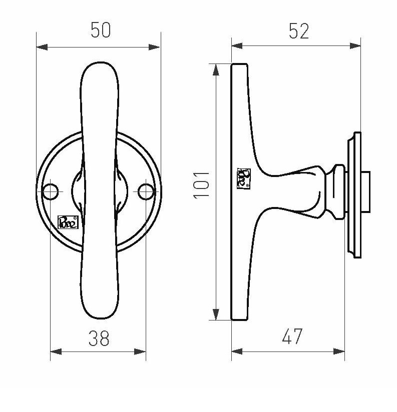 This hole part must be provided for 1 side of the door and is supplied with 2 screws and a square spindle of 100 mm.