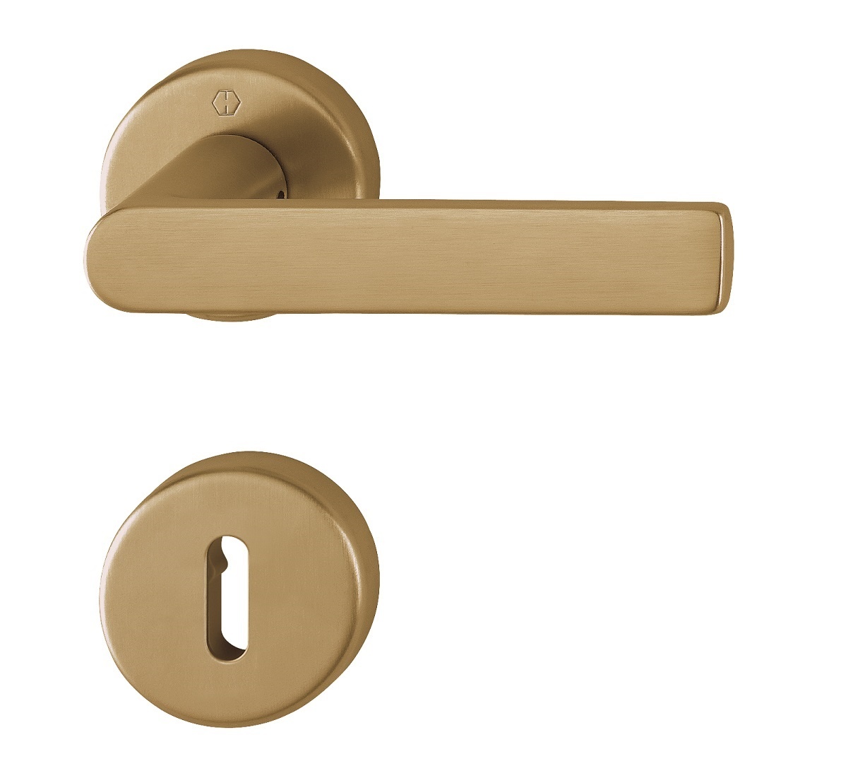 These round key plates belong to the Los Angeles door handles from Hoppe in Resista finish.