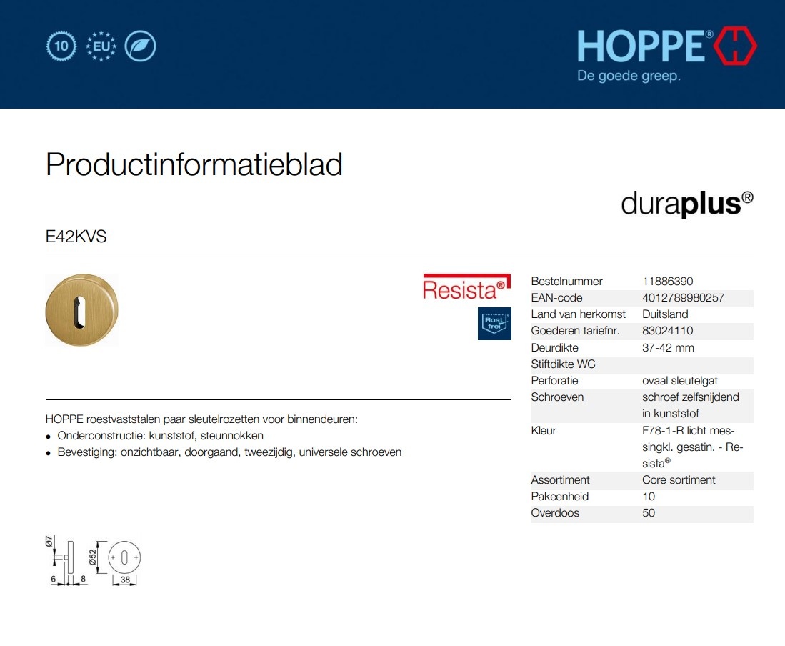 Hoppe Resista key plates round (52x8mm) with invisible fixing, satin brass