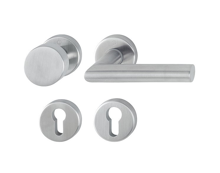 - Fixing: invisible, through, two-sided, universal screws; knob / handle rosettes on the inside, key rosettes mutual