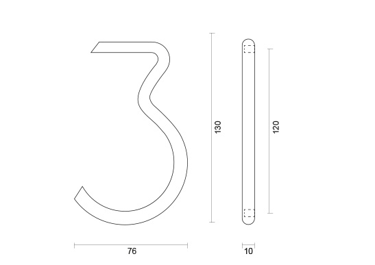 Stainless steel house number "3" for wall mounting with a height of 130 mm