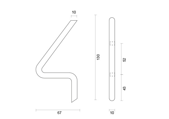 The subtle stainless steel house number has a round shape, a height of 130mm and a Ø of 10mm.
