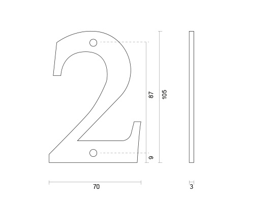 The house number has a flat shape, a height of 106mm and a thickness of 3mm.
