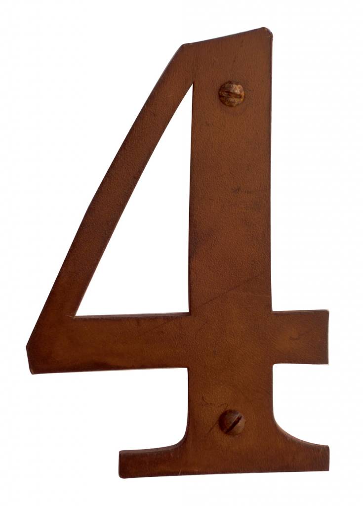 The rust-colored house numbers are supplied per piece including mounting materials.