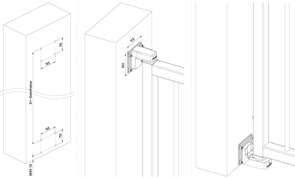 Discover our optional set for mounting the INTERIO gate closer directly to the wall. This set consists of two wall plates made of hot-dip galvanized steel and is supplied with all necessary mounting materials.
