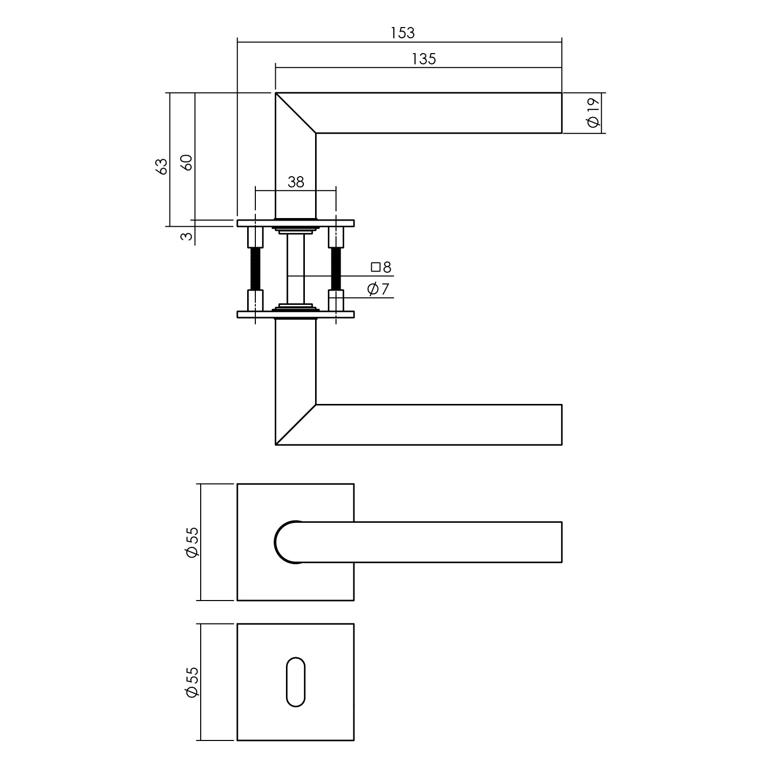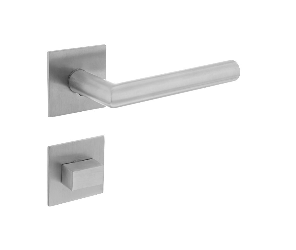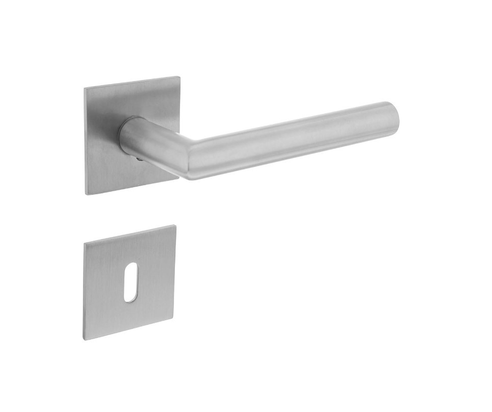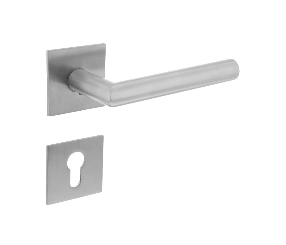 The rosette is 3 mm thin and gives your door a sleek finished appearance. This door handle on square rosette is made of stainless steel and subsequently brushed, giving it a matt appearance. The diameter of the handles is 19 mm.