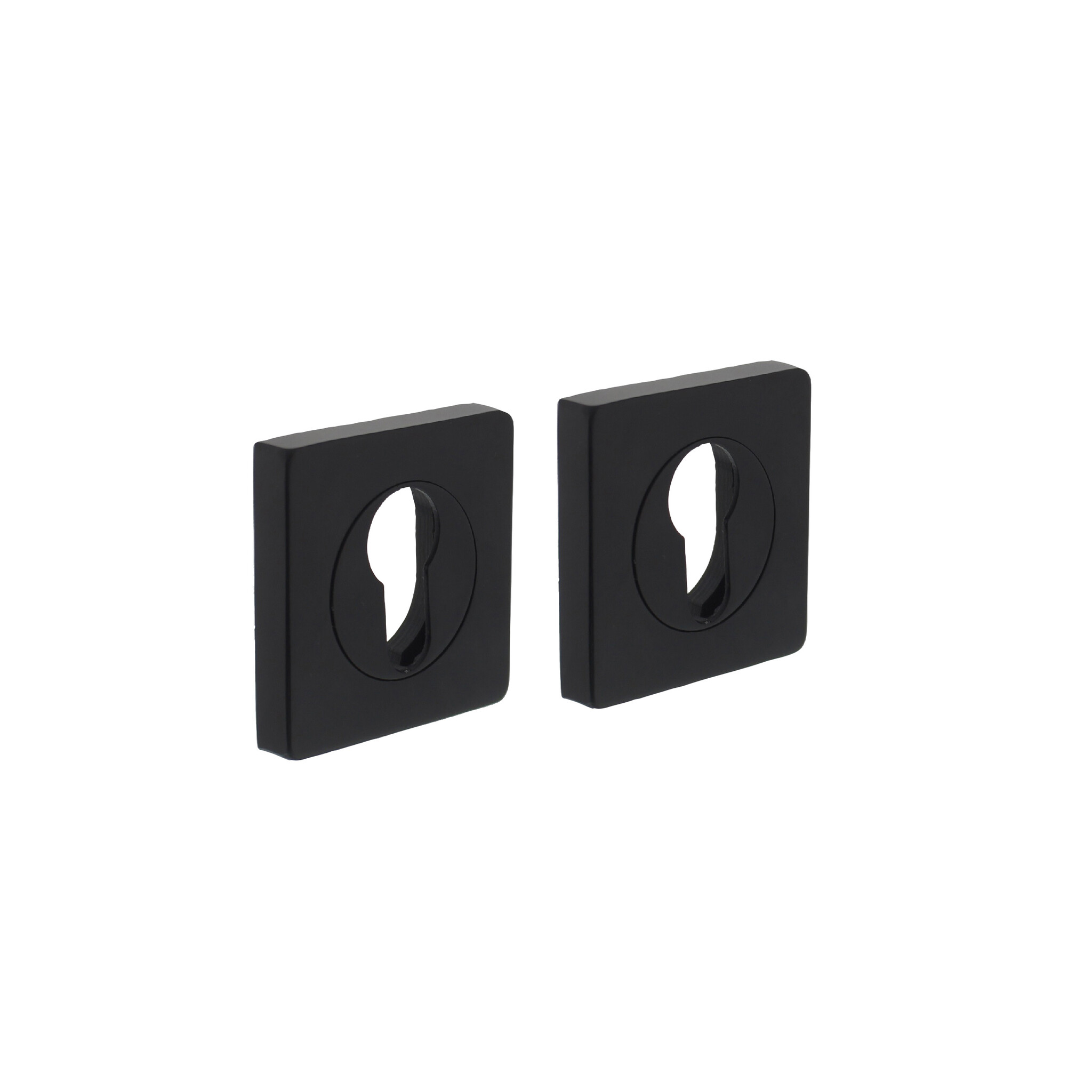 Solid door handles "Minos" on square rosette in matt black, excluding key plates