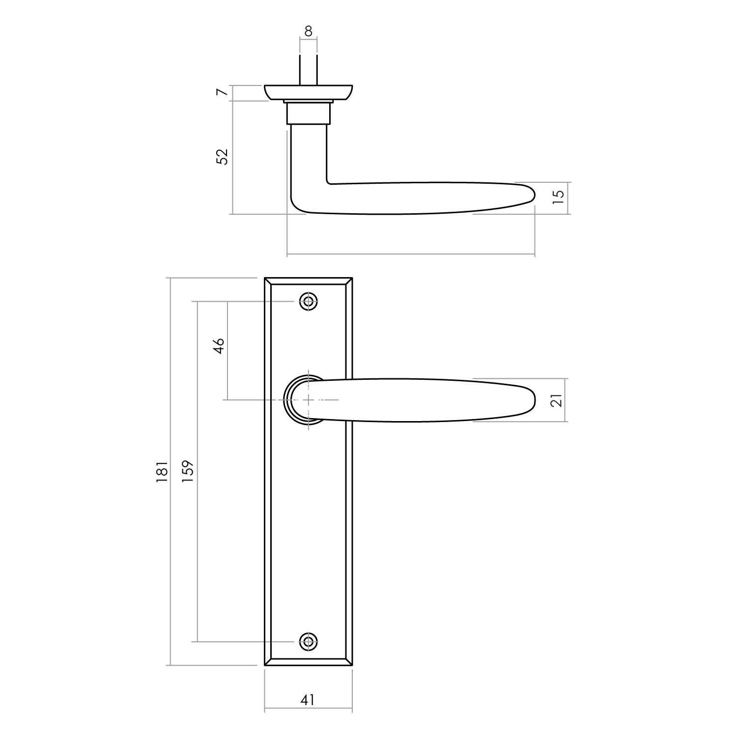 Intersteel Door handle Sophie with shield 181x41x7mm blind in matt black