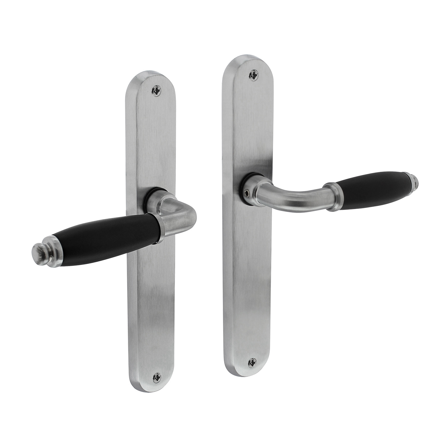 The advantage of door handles on a shield is that they often cover the holes that were previously in the door. These door handles are suitable for interior doors with a door thickness of 38-44mm.