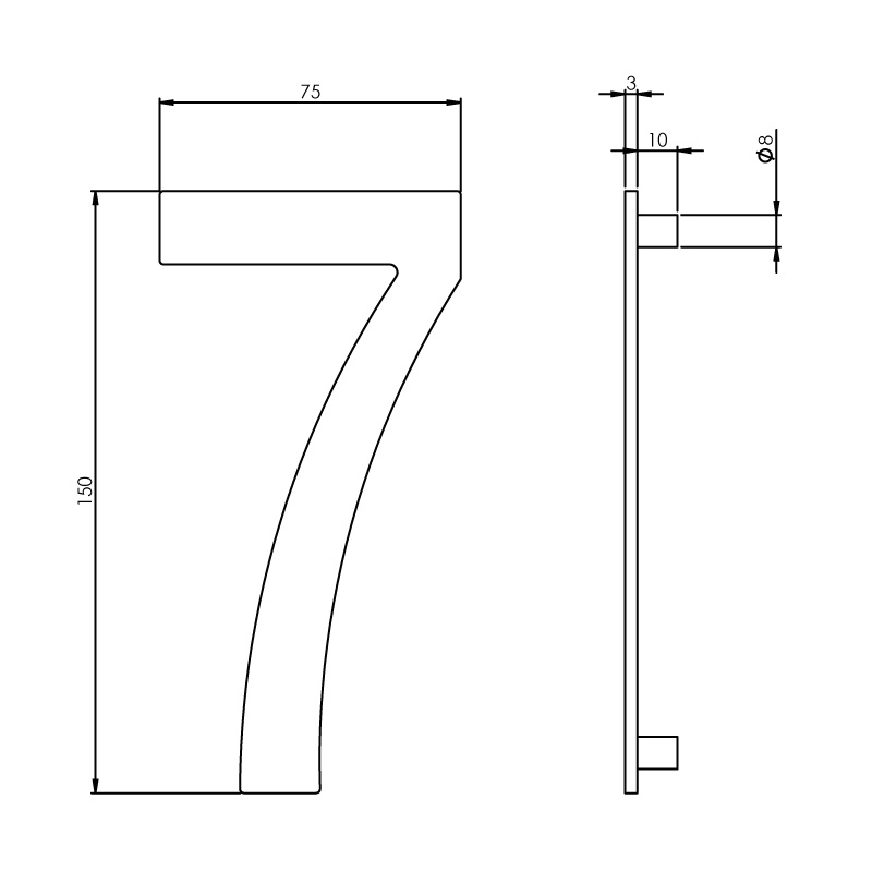 Beautiful house number '7' made of stainless steel that is brushed at the end to obtain a beautiful matte look