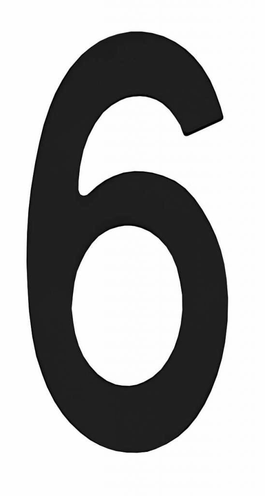 Description House number "6" with a height of 150mm in matt black version