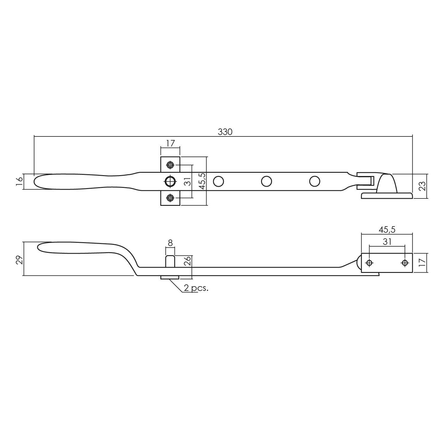 With this matte black window stay it is easy to ventilate a home. This window stay is intended for outward opening windows and is equipped with two adjusting pins, so you can easily determine the ventilation position.