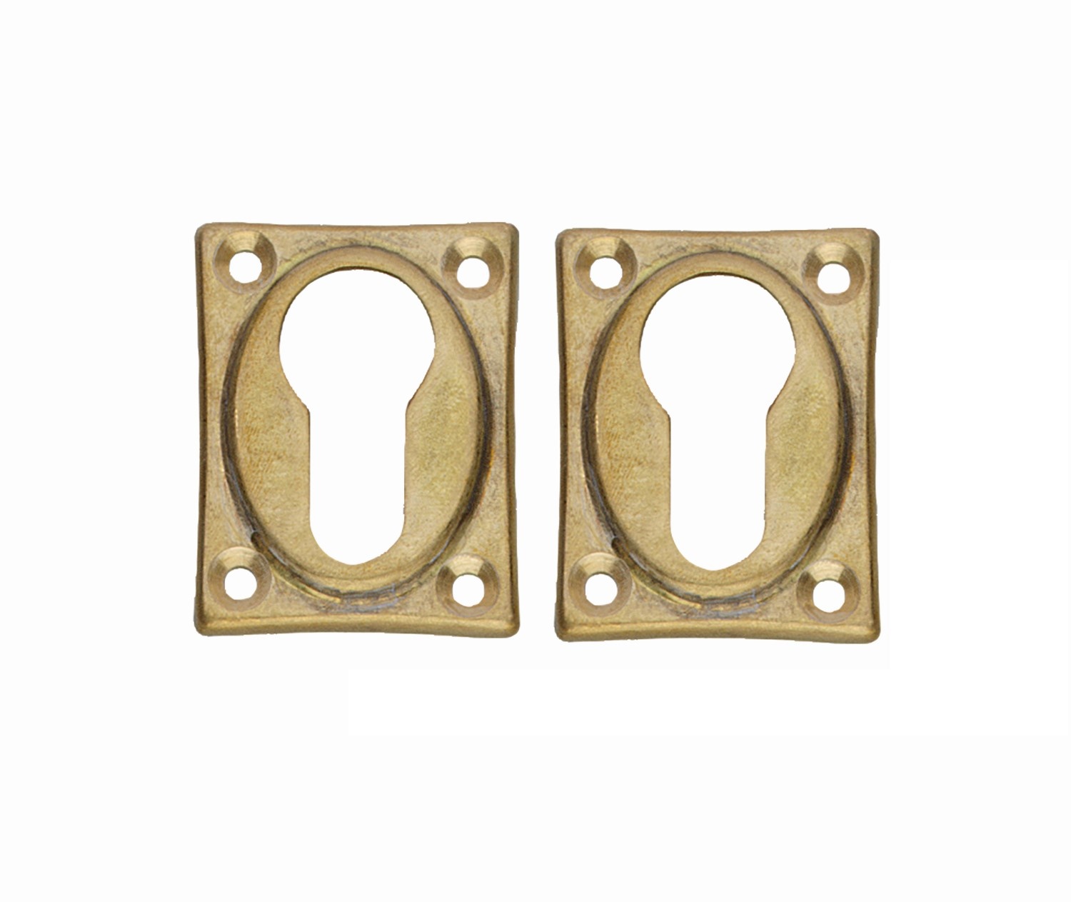 These rectangular rosettes with profile cylinder hole are made of tumbled brass. In addition, these rosettes are provided with screw holes.