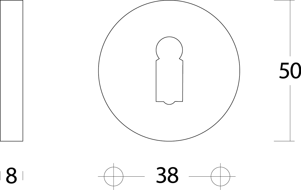 These round rosettes with keyhole are made of chrome and polished afterwards, giving them a shiny appearance.