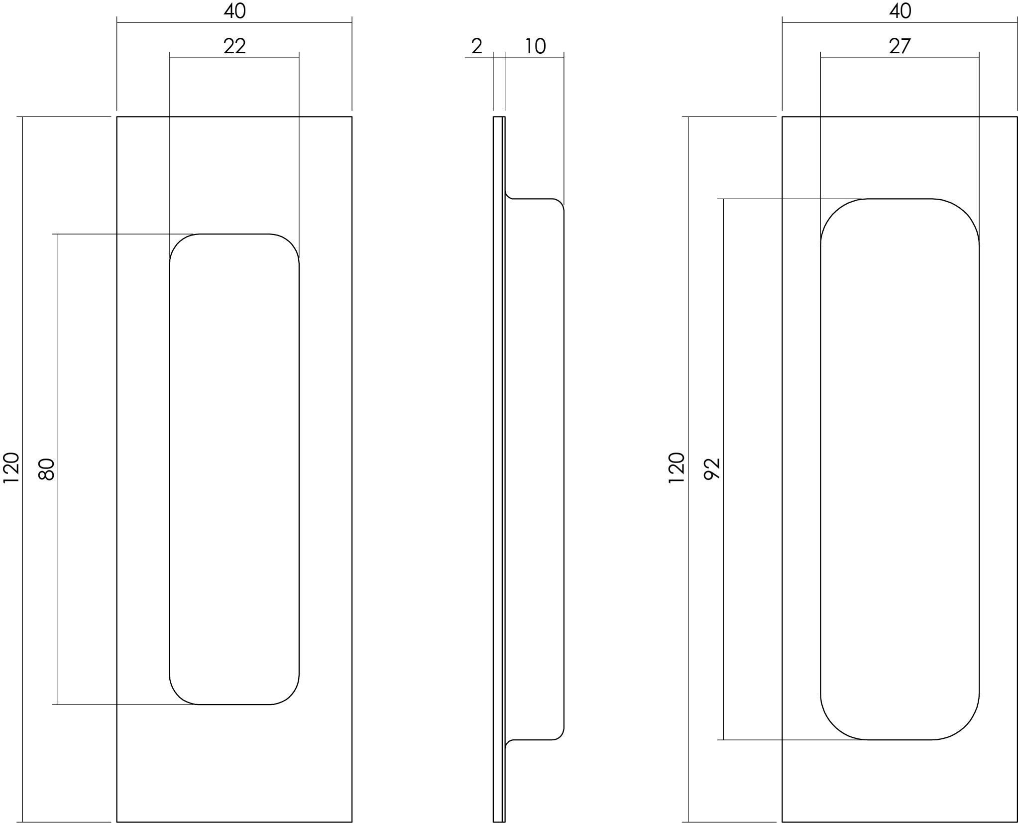 Intersteel Sliding door bowl rectangle 120x40 mm blind matt black