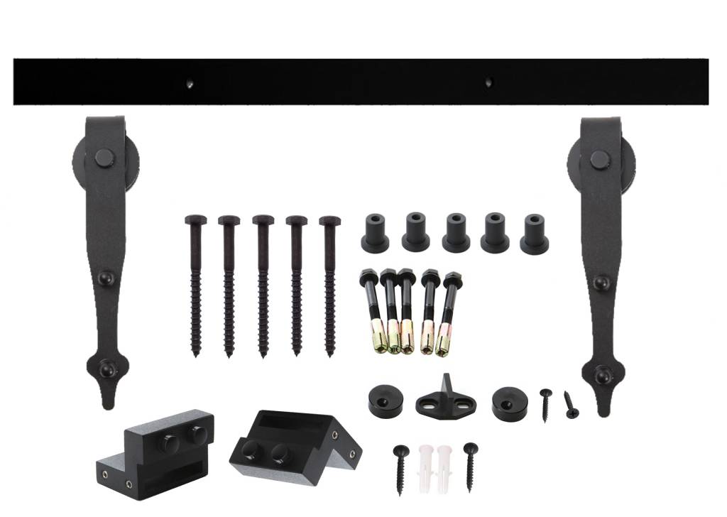 Steel door stoppers, spacers and a floor guide are included to ensure proper guiding of the sliding door. This set comes with mounting material and manual.