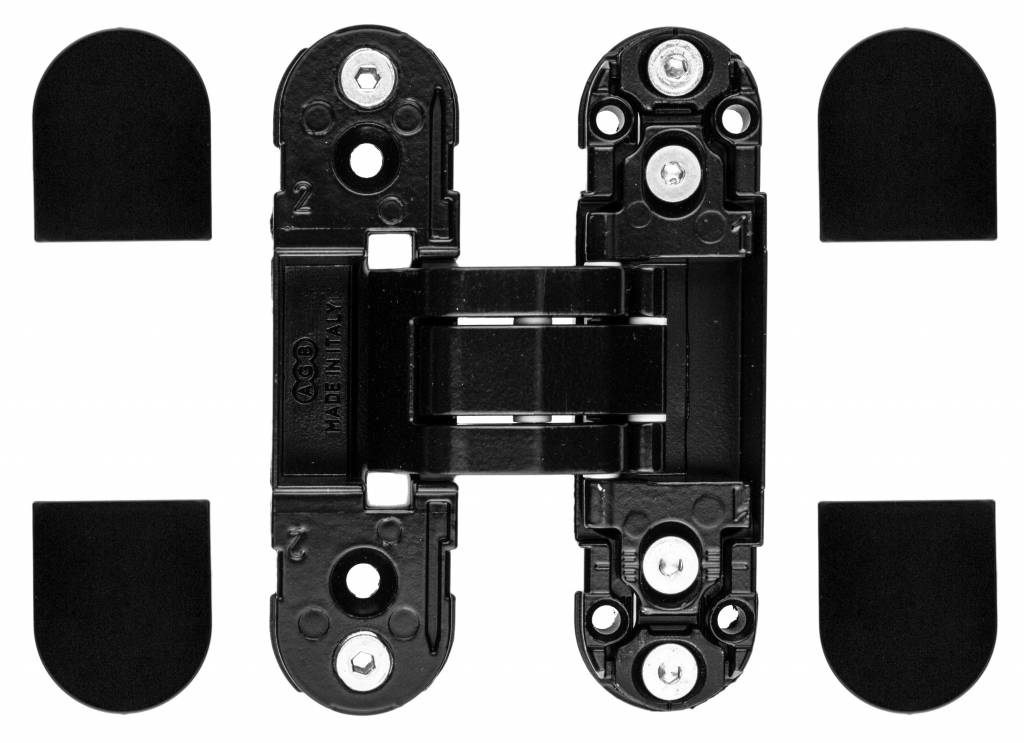 These black 3D hinges can be rotated 180° and are adjustable in 3 ways (pressure, vertical and horizontal).