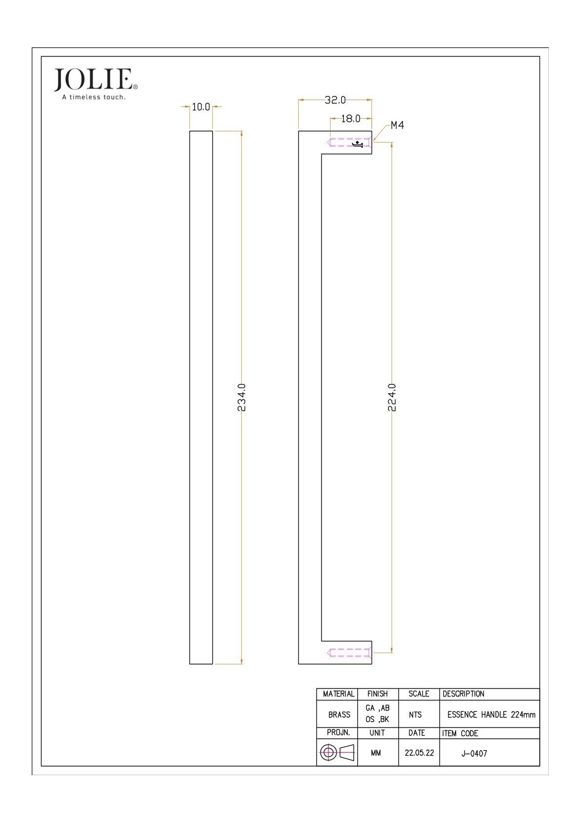 JOLIE's Essence furniture handles combine subtle design with high-quality craftsmanship. The handles are hand-cast from solid brass using the traditional sand-casting method.