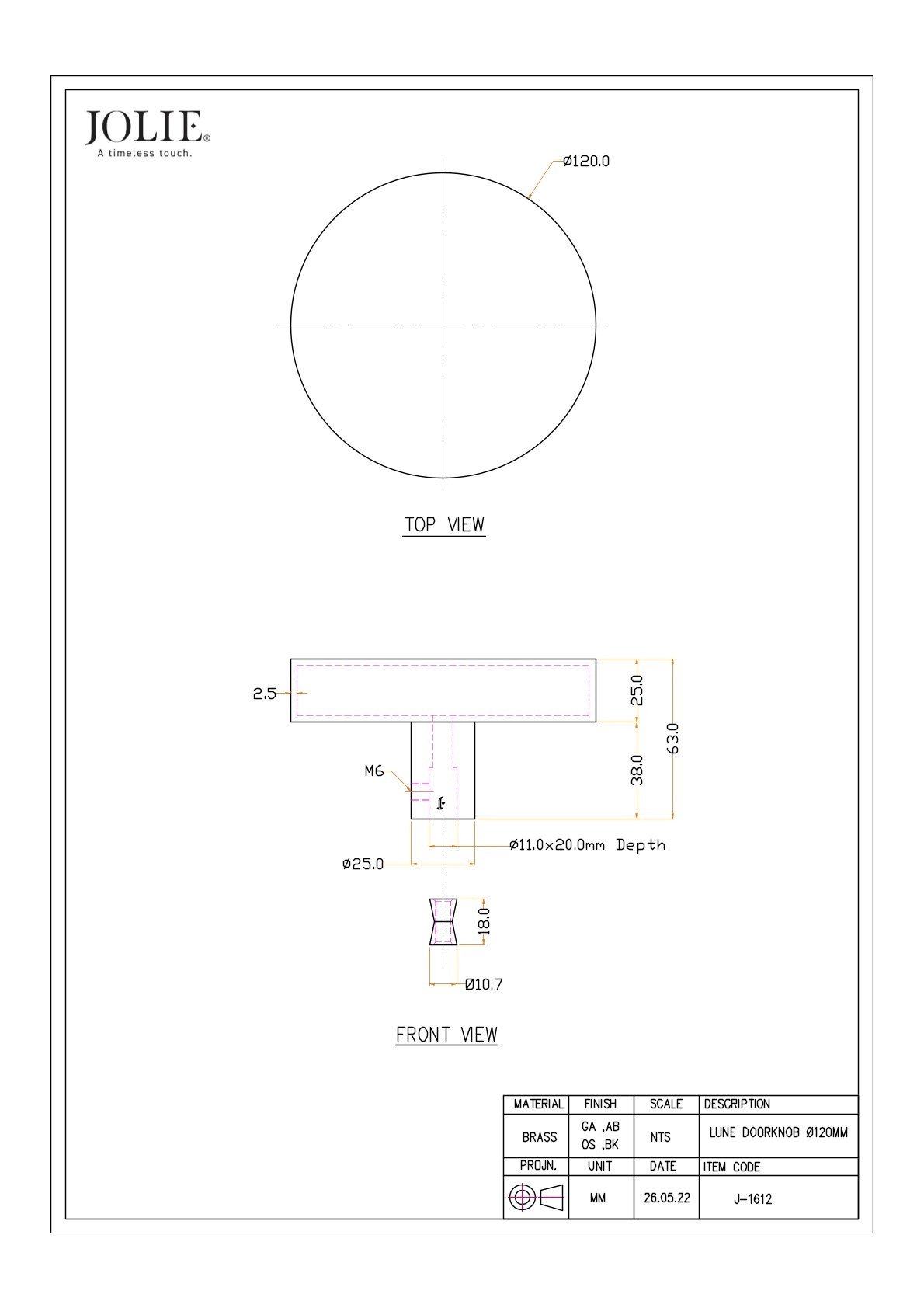 Like all JOLIE products, the LUNE knob is hand-cast from solid brass using the traditional sand-casting method, giving each piece a unique texture and tactile quality.