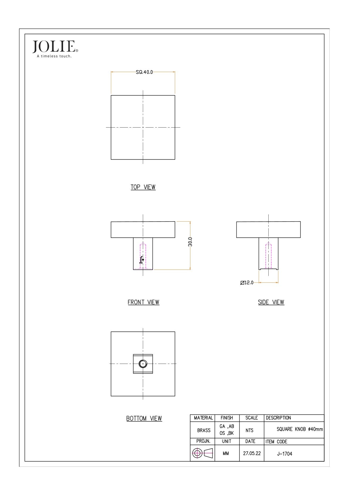 JOLIE's CARRÉ furniture knobs combine timeless design with exceptional craftsmanship. Their sleek, square shape is carefully hand-cast from solid brass using the traditional sand-casting method, giving each knob a unique texture and authentic look.