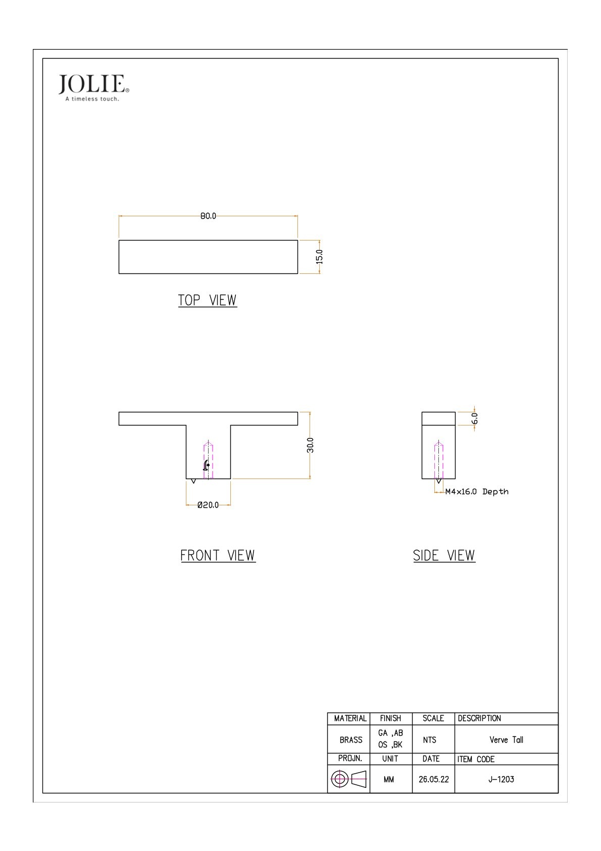 The JOLIE Verve furniture handle adds a touch of refined character to any interior. Its subtly rounded design seamlessly complements both modern and timeless furniture styles.