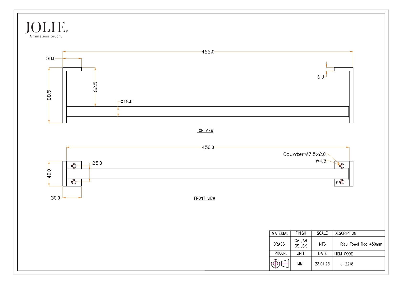 As you would expect from JOLIE, the Rieu towel holder is also hand-cast from solid brass and carefully patinated, making each piece unique in texture and appearance.