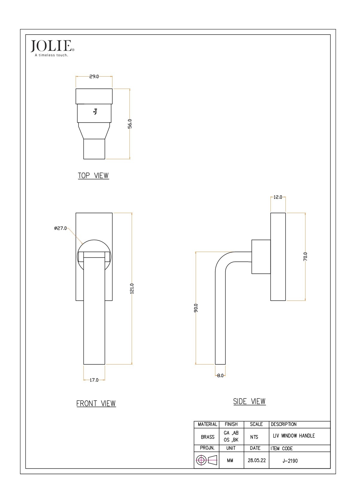 PLEASE NOTE: JOLIE window, furniture, and door hardware is cast and finished entirely by hand. Each piece has its own character, with subtle variations in size, texture, and color. These natural variations demonstrate true craftsmanship and make each piece unique—no two are exactly alike.