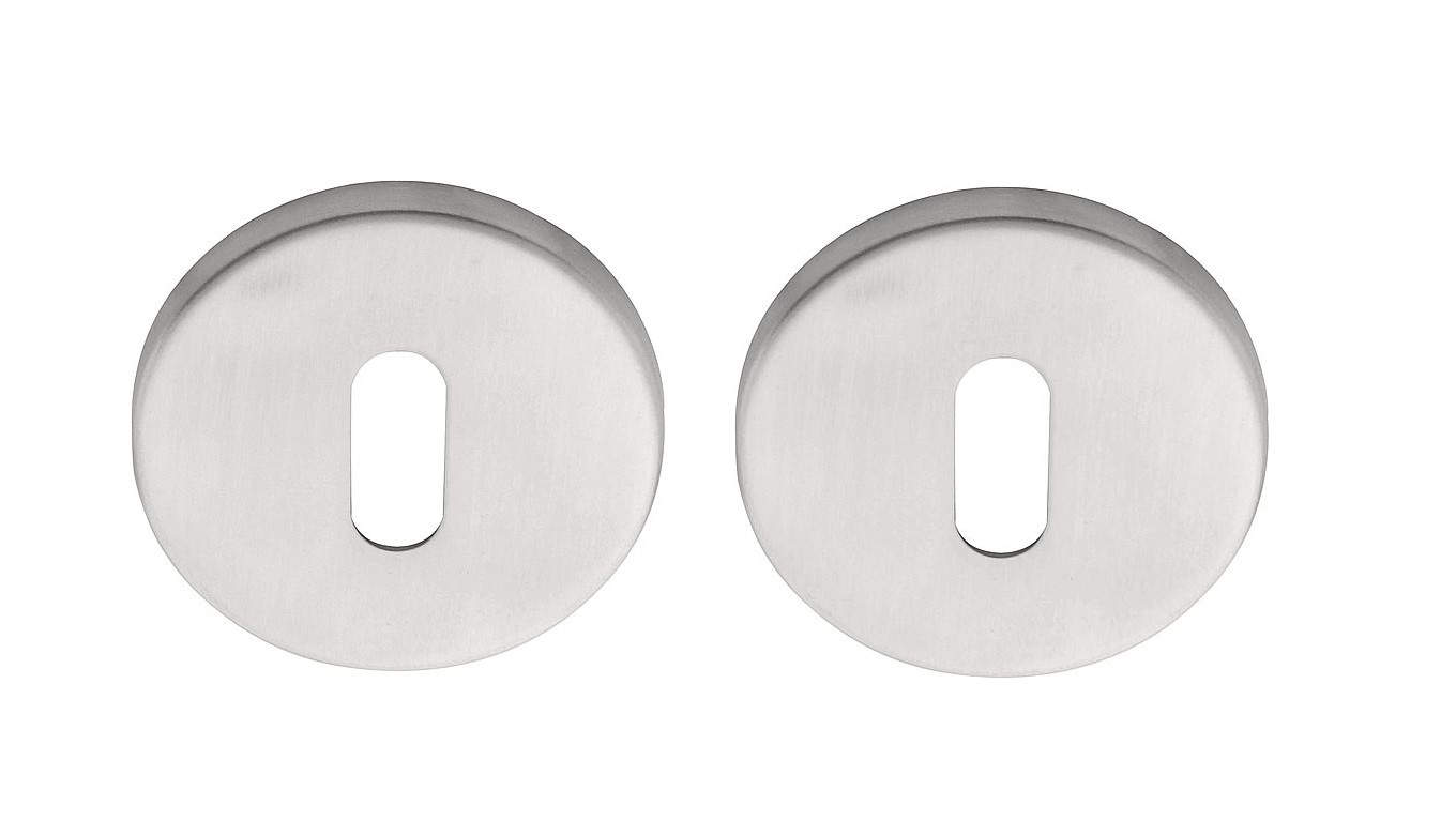 These polished stainless steel key plates LBN50 are supplied in pairs including bottom rosette, finishing rosette and mounting material.