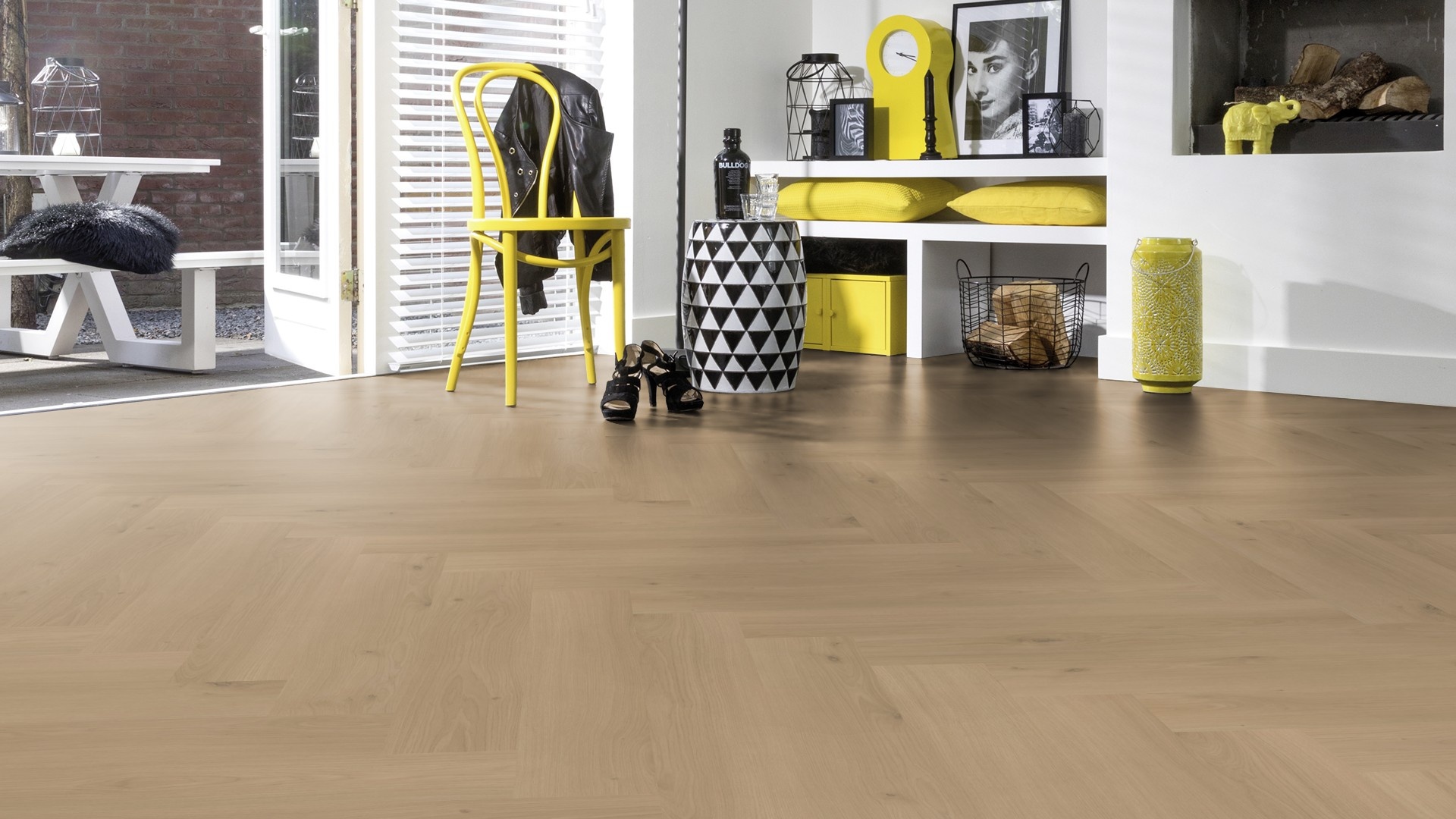 The relief structure provides a natural appearance and thanks to the V-groove all around, the herringbone pattern is beautifully emphasized.