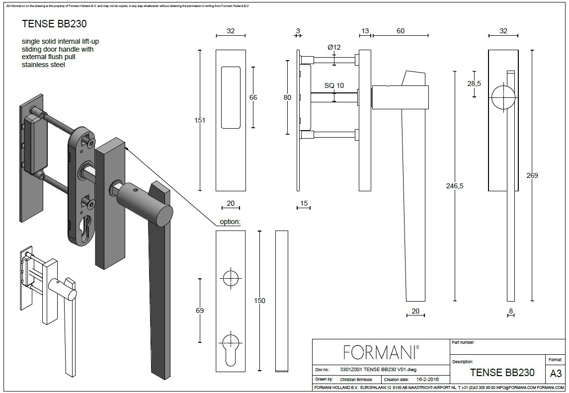 The bronze lifting/sliding handle is made of stainless steel and finished with a strong bronze coating.