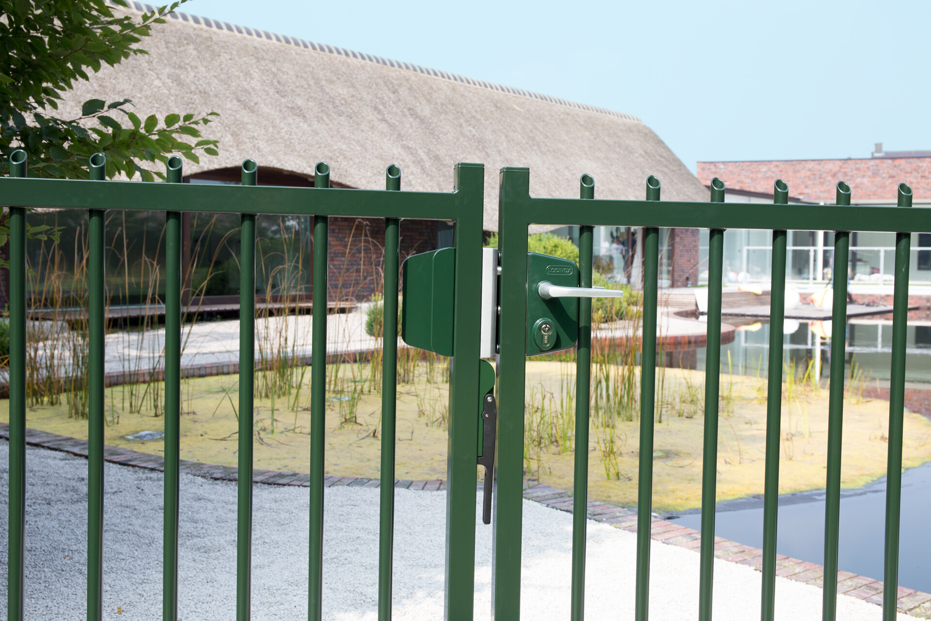 - Pleated counter plate in the same shape as the surface-mounted gate lock