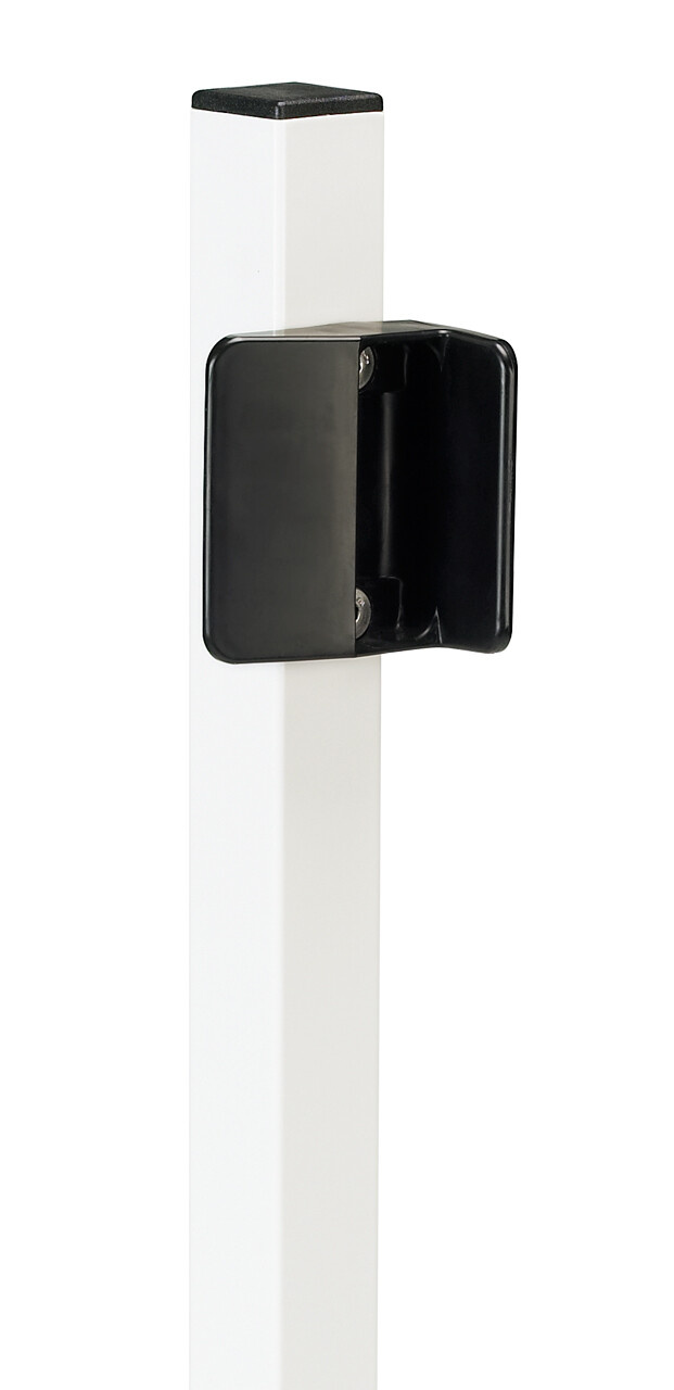 - Keeper in polyamide for mounting on a square profile of 40 mm or more