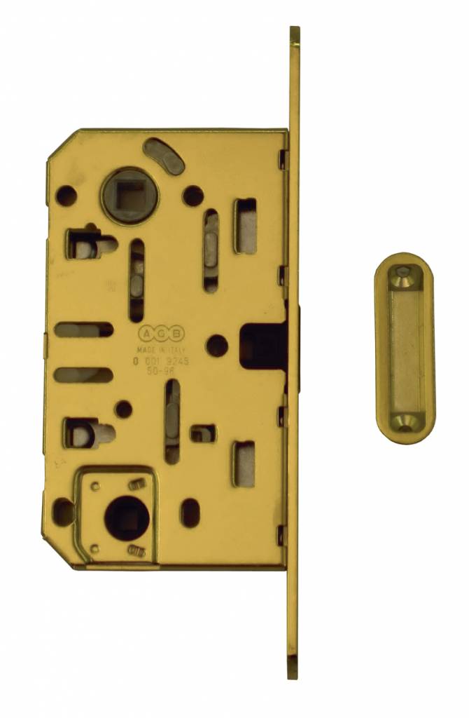 Magnetic lock AGB gold - front plate 195x18mm - WC axle size 96mm