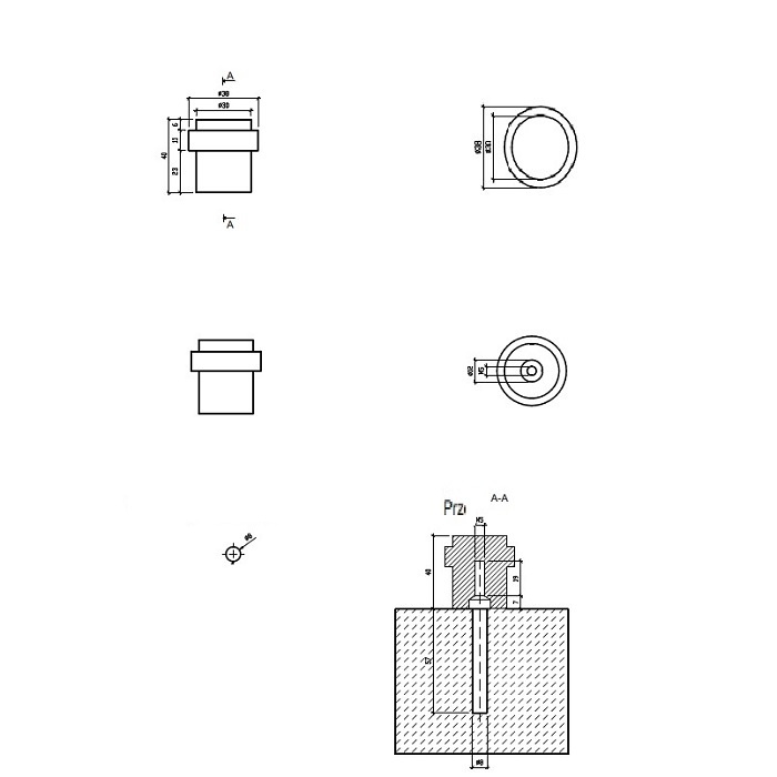 White door stopper 1718 - for floor mounting Ø38x40mm in matt white